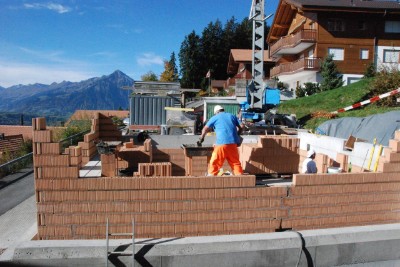 Bei bestem Wetter beginnen die Schalungsarbeiten.